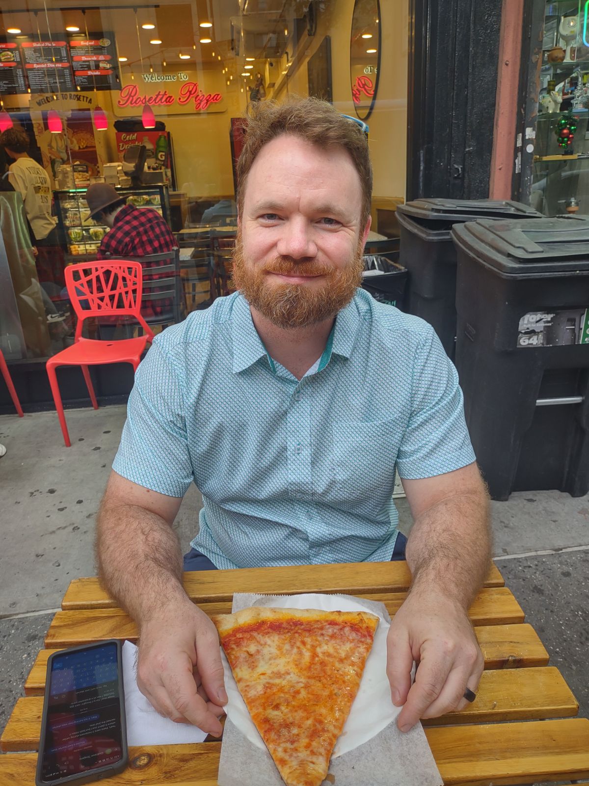 The slice is large and wide, and designed to be folded in half lengthwise. That’s a signature trait. - Crisp yet pliable texture
